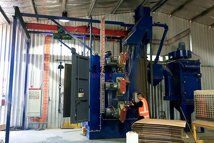 吊钩通过式抛丸机是根据大型工件尺寸及工艺要求而设计的吊钩台车式联合抛丸清理机,主要用于大型钢结构表面处理,以达到清除钢结构铁锈、旧漆皮及旧腻子等杂物,起到清洁的目的。对于可以吊挂的大型工件,可以采用双电动葫芦抬起工件通过抛丸区,对工件进行抛丸清理,多台抛丸器经电脑模拟布置,可以对工件的各个表面彻底的进行清...